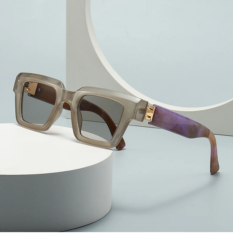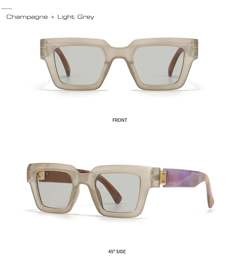 The Champagne I doesn’t follow the usual formula. With a soft square frame in beige and unexpected violet temples, these glasses walk the line between subtle and standout. Finished with gold-tone hinges and crisp edges, they’re made for those who appreciate nuance, notice detail, and don’t need loud to be seen.